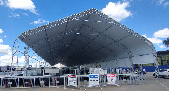 Imagine uma série de galpões construídos com estrutura de alumínio tipo box truss, que podem ser montadodas com diferentes medidas, adaptando-se a diversas necessidades. O sistema de montagem boxs Truss, formam um sistema extremamente resistente, garantindo estabilidade e segurança.